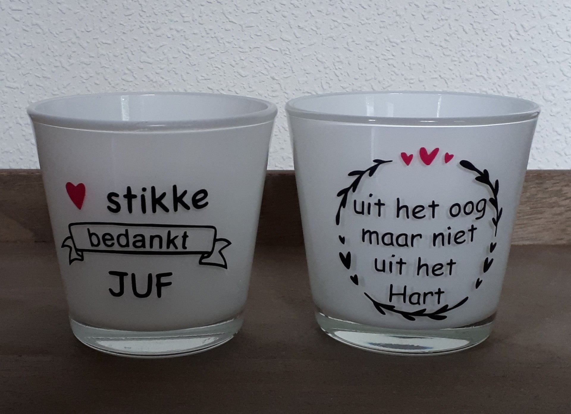 Waxinelichtje met leuke bedanktekst voor juf of meester